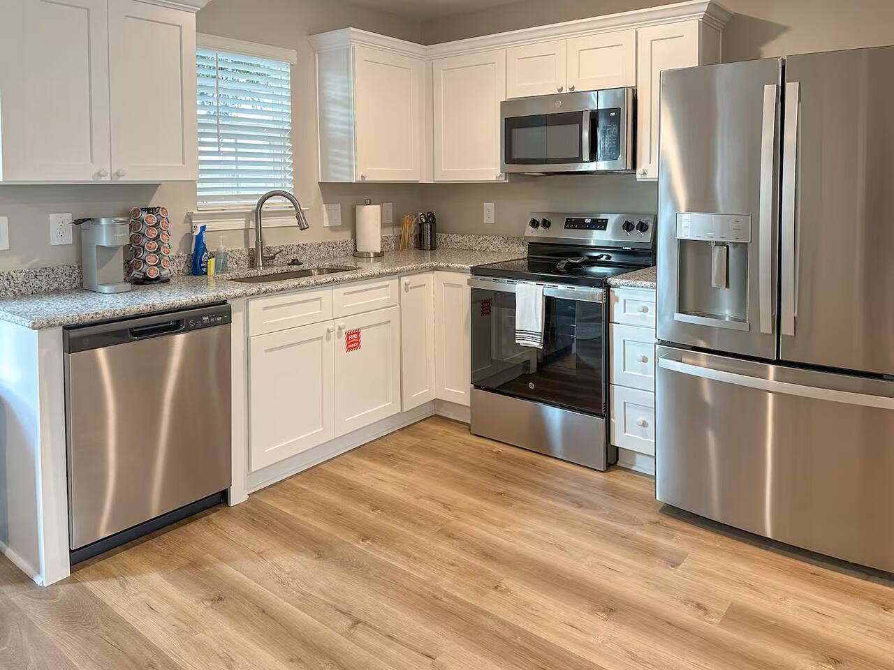 Steps from the pristine white sands of Biloxi Beach. This charming getaway offers unparalleled access to the Mississippi Gulf's serene shores. Comfort & Space: With 3 bedrooms, this home sleeps 6, plus a sofabed for up to 8 guests. Each room is designed for relaxation, featuring cozy beds and TVs throughout. Modern Amenities: Enjoy a fully equipped kitchen, high-speed Wi-Fi, a cozy living area with a flat-screen TV, and a scenic patio for coffee or evening gatherings.