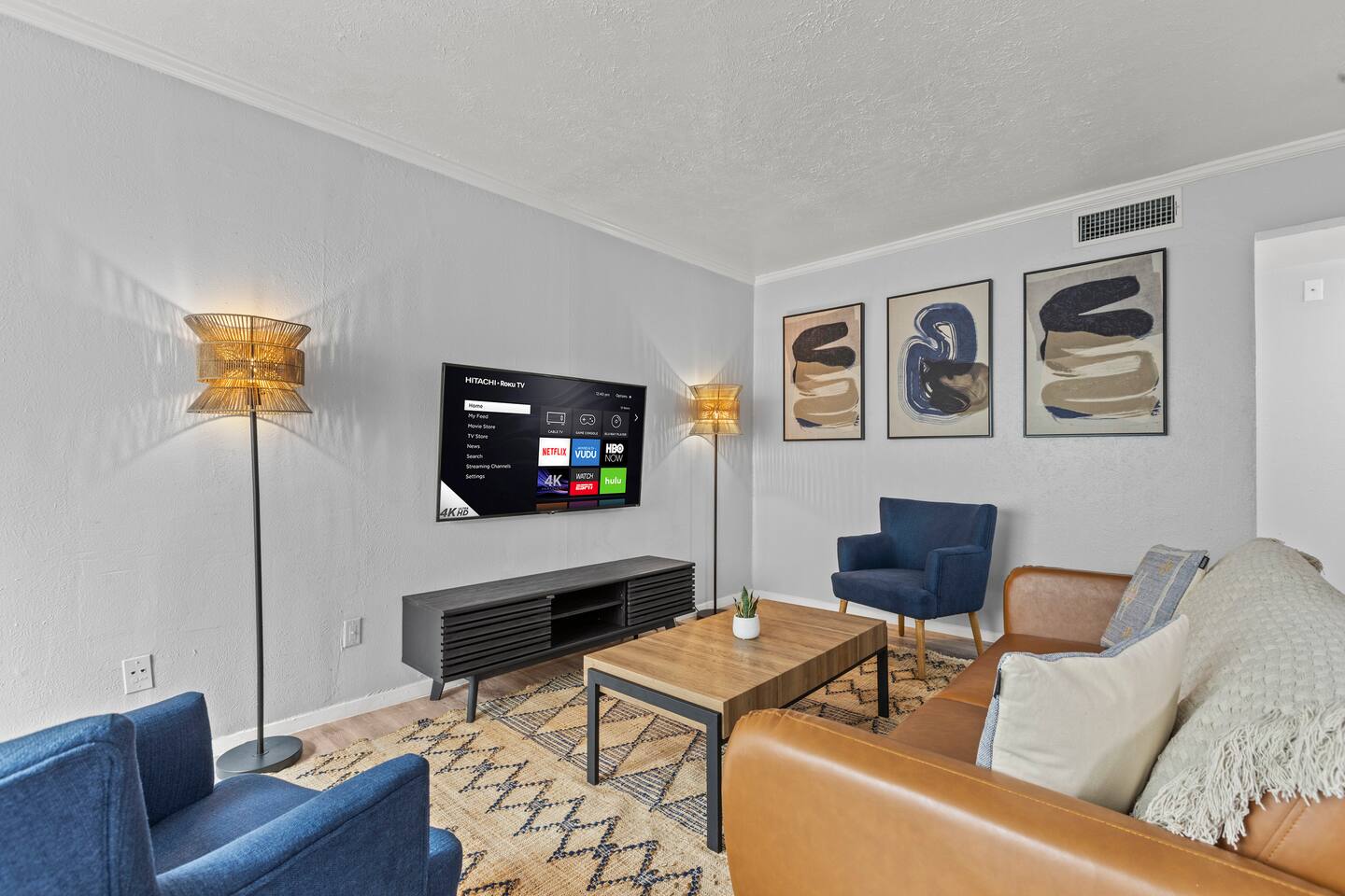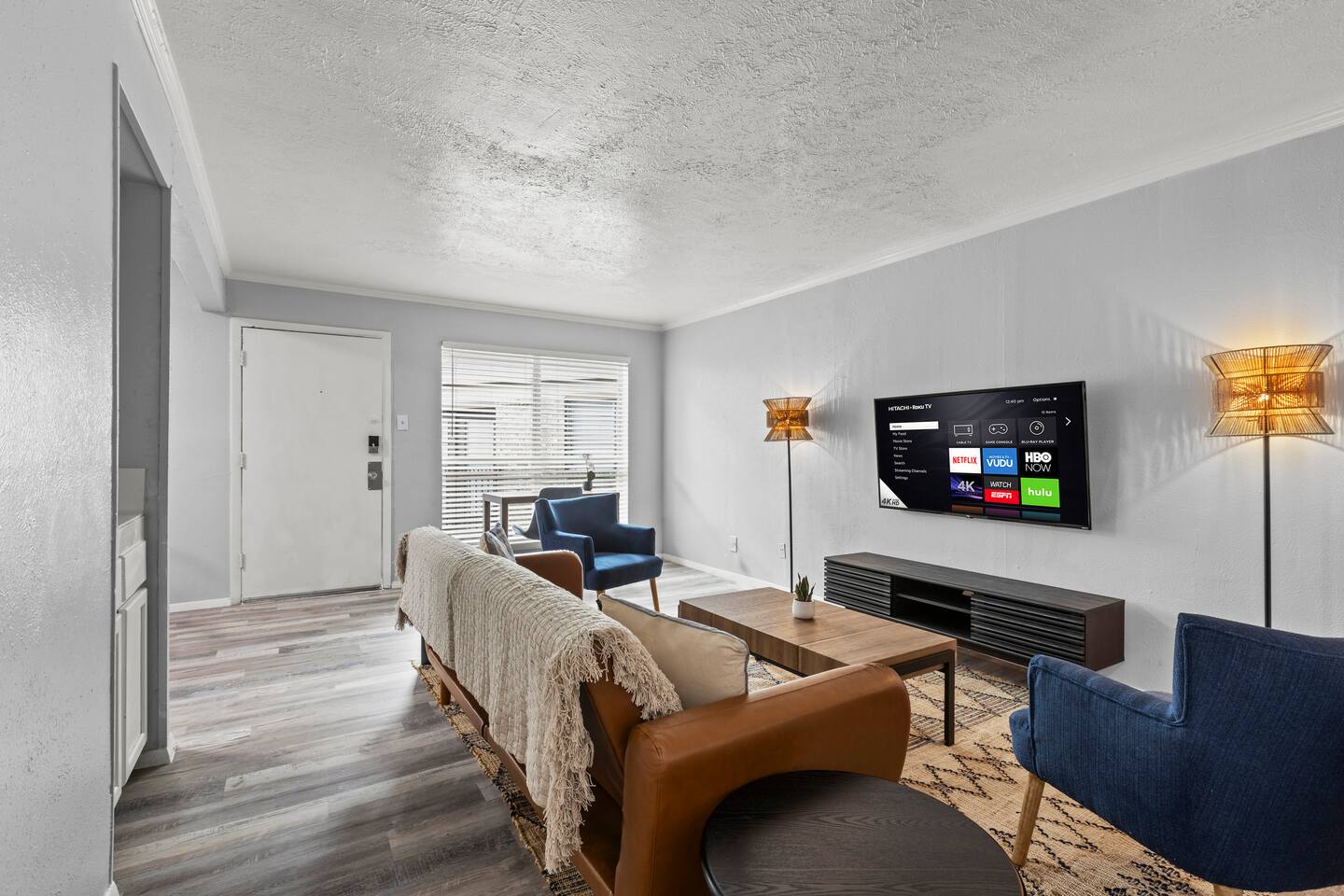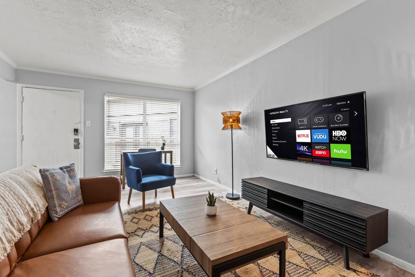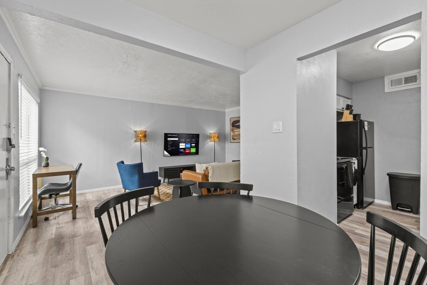 Stylish and comfy 1BR in the heart of Cedar Springs — just minutes from Uptown, Deep Ellum, and Love Field Airport. Features a king bed, cozy living room, workspace, and fully equipped kitchen. Smart TV, fast Wi-Fi, free parking, and self check-in included. Perfect for business or leisure with easy access to Dallas hotspots like Klyde Warren Park, Perot Museum, and Bishop Arts. Relax, work, or explore — your home away from home awaits.