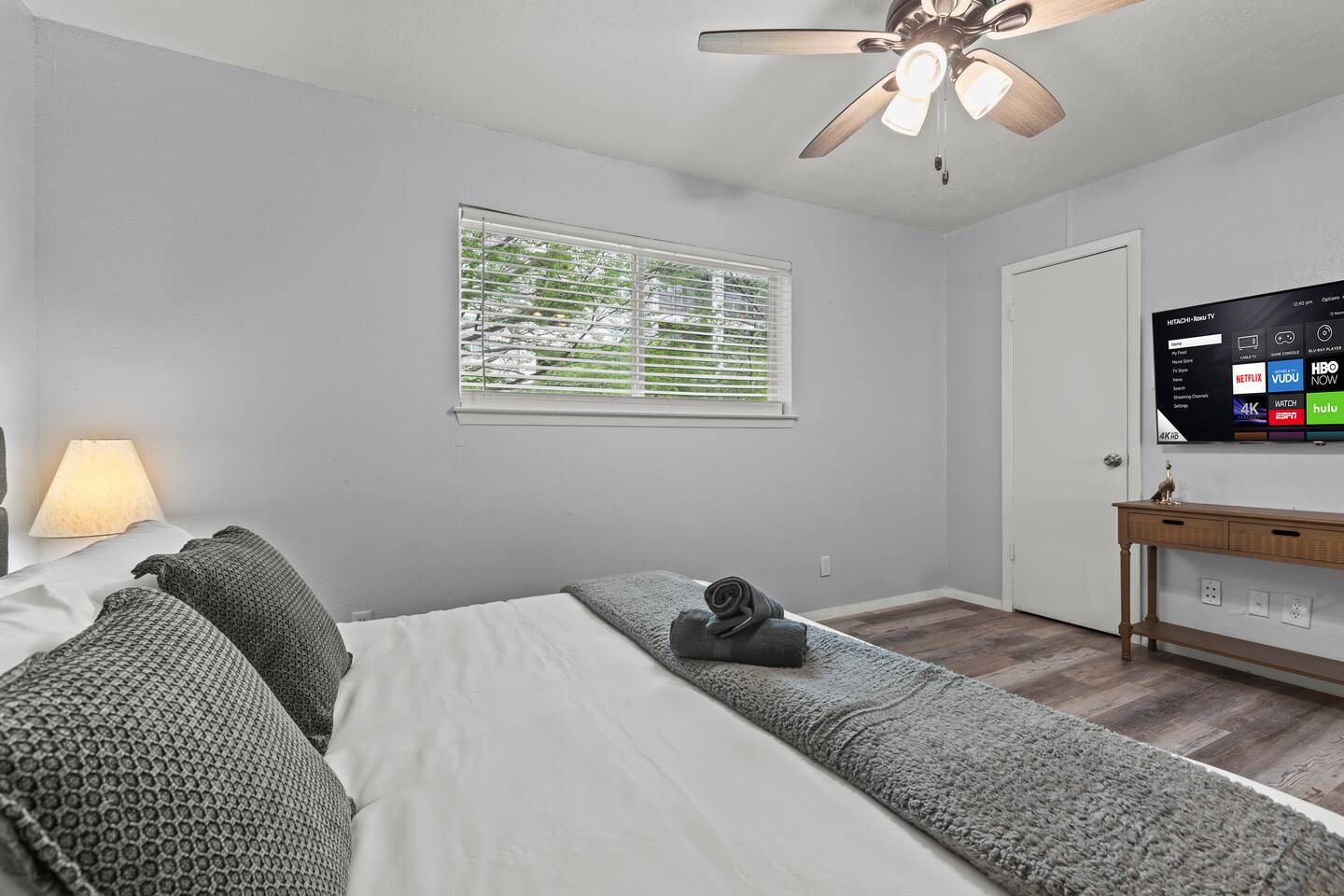 ✨ Stylish 1BR Getaway in Cedar Springs Our home is a clean, comfortable retreat that offers great value and convenience close to downtown. While the surrounding area is more urban and developing, our space is secure, well-maintained, and thoughtfully designed to ensure a relaxing stay. 📍 Score big on location! ⚽ Stay just 30 minutes from World Cup match venues—close to the action, with a comfortable place to unwind after the game. ⭐ WHAT YOU'LL LOVE: ✅ King Bed + Sofa Bed + Air Mattress ✅ Fully Stocked Kitchen 🍷 ✅ Fast Wi-Fi + Smart TV 📺 ✅ Dedicated Work Space 💻 ✅ Hair Dryer + Iron/Board ✅ Free On-Site Parking 🅿 ✅ Self Check-In w/ Keypad 🔑 ✅ Portable Pack ’n Play crib 🍼✨ 🛋 The Vibe Inside This thoughtfully designed apartment is cozy, functional, and filled with natural light 🌞. You’ll love the clean layout, calming tones, and comfortable furniture — perfect for solo travelers, couples, or remote workers. ★ Living Room Chill out after a long day or stream your favorite show with ease. ● Comfy Sofa Bed 🛋 ● Smart TV (login to your apps!) ● Coffee Table ● Multi-device Charging Station ★ Kitchen & Dining Whether you’re cooking a full dinner or just heating up takeout, we’ve got you covered. ● Fridge + Freezer ● Oven, Stove & Microwave 🍳 ● Coffee Maker + Toaster ☕ ● Wine Glasses + Dishes + Cookware ● Dish Soap + Hand Soap 🧼 ● Table for 2 � ★ Bedroom Quiet and inviting — your perfect spot to recharge 💤 ● King-Size Bed with soft linens ● Smart TV ● Desk + Chair for remote work 💼 ● Pack-and-play ● Closet with hangers ● Iron & Ironing Board ● Air Mattress (stored in closet) ● Extra linen ★ Bathroom Simple, spotless, and fully stocked ● Shower + Bathtub Combo 🛁 ● Fresh Towels ● Hair Dryer ● Mirror, Toilet, Sink ● Toiletries (shampoo, conditioner, body wash)